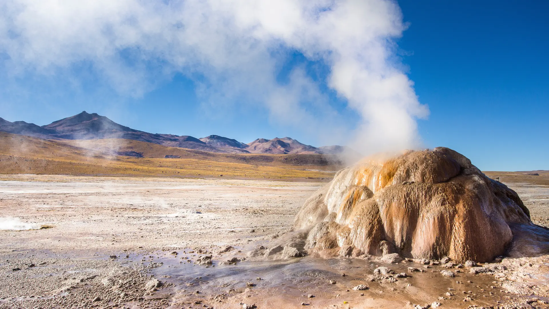 Witness one of the world’s highest geothermal fields at dawn in the Atacama Desert. As the sun rises, powerful steam columns and bubbling geysers create a surreal atmosphere against the Andes backdrop. Later, enjoy a traditional breakfast in the crisp desert air and relax in natural hot springs nearby. This unforgettable excursion combines natural spectacle, cultural insight, and breathtaking scenery, offering travelers a once-in-a-lifetime experience deep in northern Chile’s volcanic landscapes.
